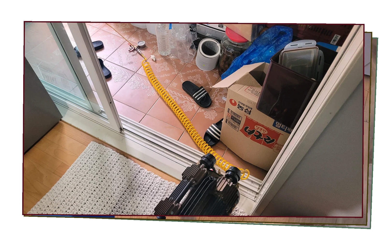 배관 내외부를 면밀히 살펴본 끝에 플렉시블 호스의 경년 열화 에서 지속적인 물 유출이 확인되었습니다.